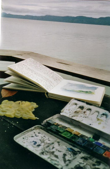 Voyage en Asie (Thaïlande, Malaisie et Indonésie) Carnet de voyage. Création de six peintures (1/1,2m) pour égayer les murs de l'étage des enfants à l' hôpital Sainte Anne de Besançon.